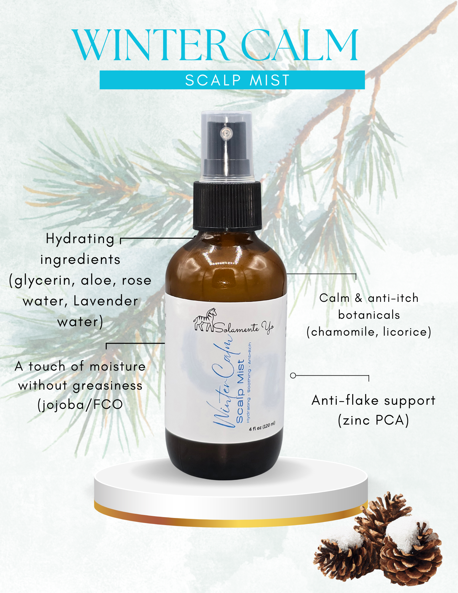 Cold weather, indoor heating, and dry air can leave the scalp feeling tight, itchy, and uncomfortable. Winter Calm Scalp Mist was specially formulated as a seasonal scalp treatment to help restore comfort and hydration during the winter months.